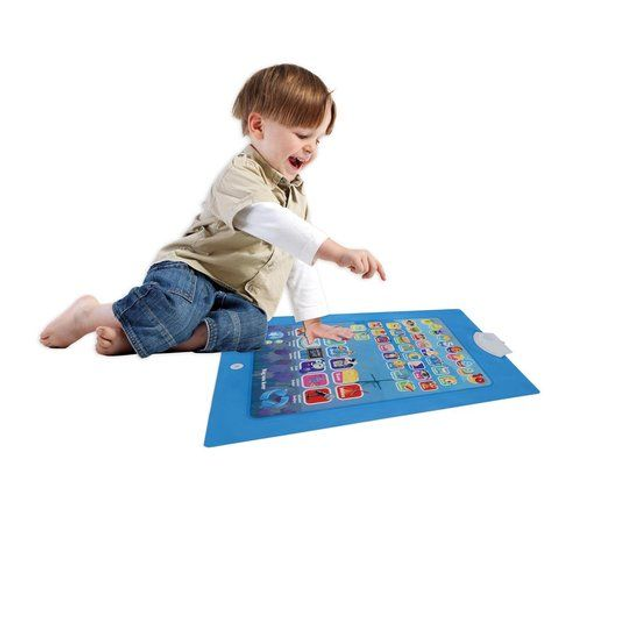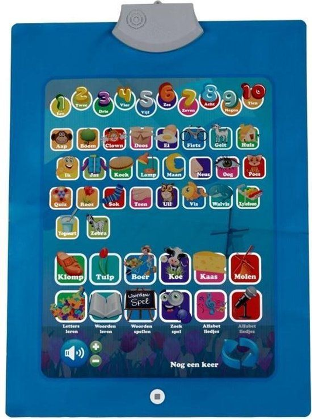 Leren is leuk. Dat bewijst deze oefenmat van Eddy Toys. Hij ziet eruit als een hele grote tablet, maar dan in de vorm van een mat. De mat heeft een afmeting van 58x42cm en staat vol kleurrijke plaatjes, waarvan heel veel met een uitgesproken Nederlands thema. Leg hem op de grond, druk op een plaatje en je bent vertrokken. Spelenderwijs leer je de woorden en de letters kennen. Er zitten ook leuke liedjes in die je alles leren over lezen en schrijven en die je luidkeels mag meezingen. De leermat werkt op 3xAAA batterijen. Deze zijn niet meegeleverd.