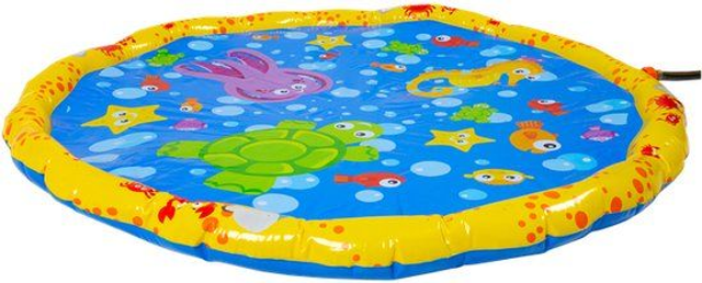 The Sprinkle 'N Splash Water Play Mat is the perfect way to get your child used to water in a playful way. From the soft, water-filled edge, water gently sprays onto the shallow mat, enough to give your toddler a nice bath. Funny pictures of sea animals will cheer and entertain your child all summer long!